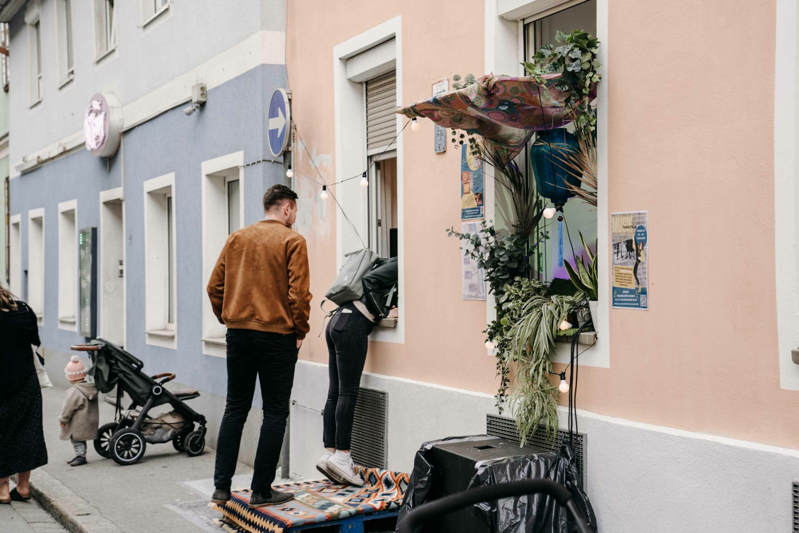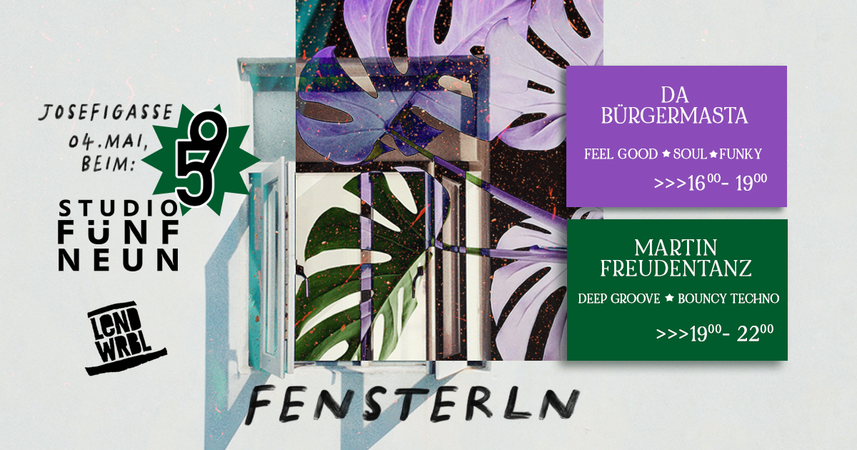 Die Idee: Fenster im EG auf und die Josefigasse mit großartiger Musik durchfluten! Stimmung unter die Leute bringen und einen Hauch Sommer verbreiten, durch die richtigen Klänge und mit tropischem Style! Kommt vorbei und tanzt mit uns, Fensterln beim DJ 😉