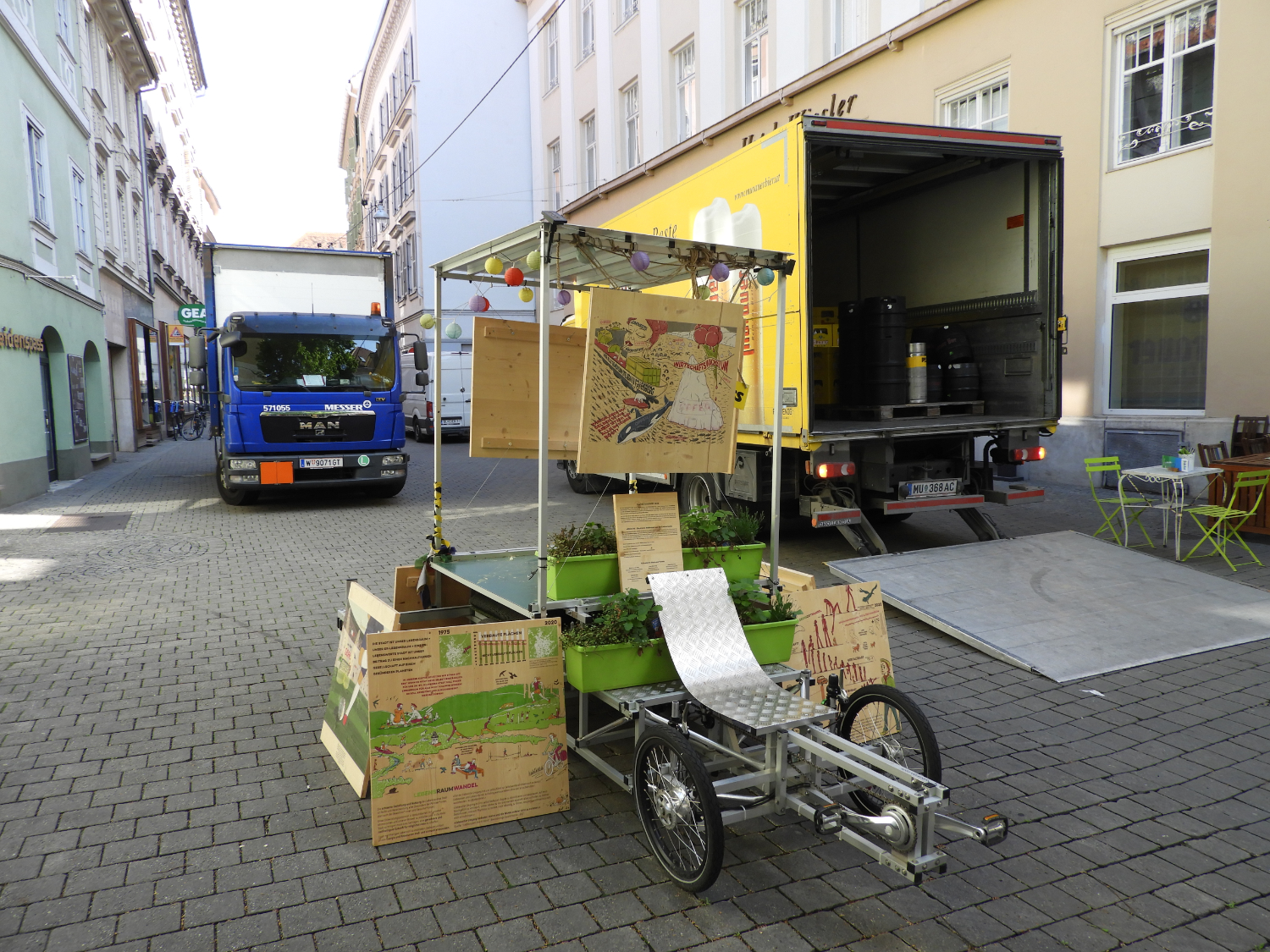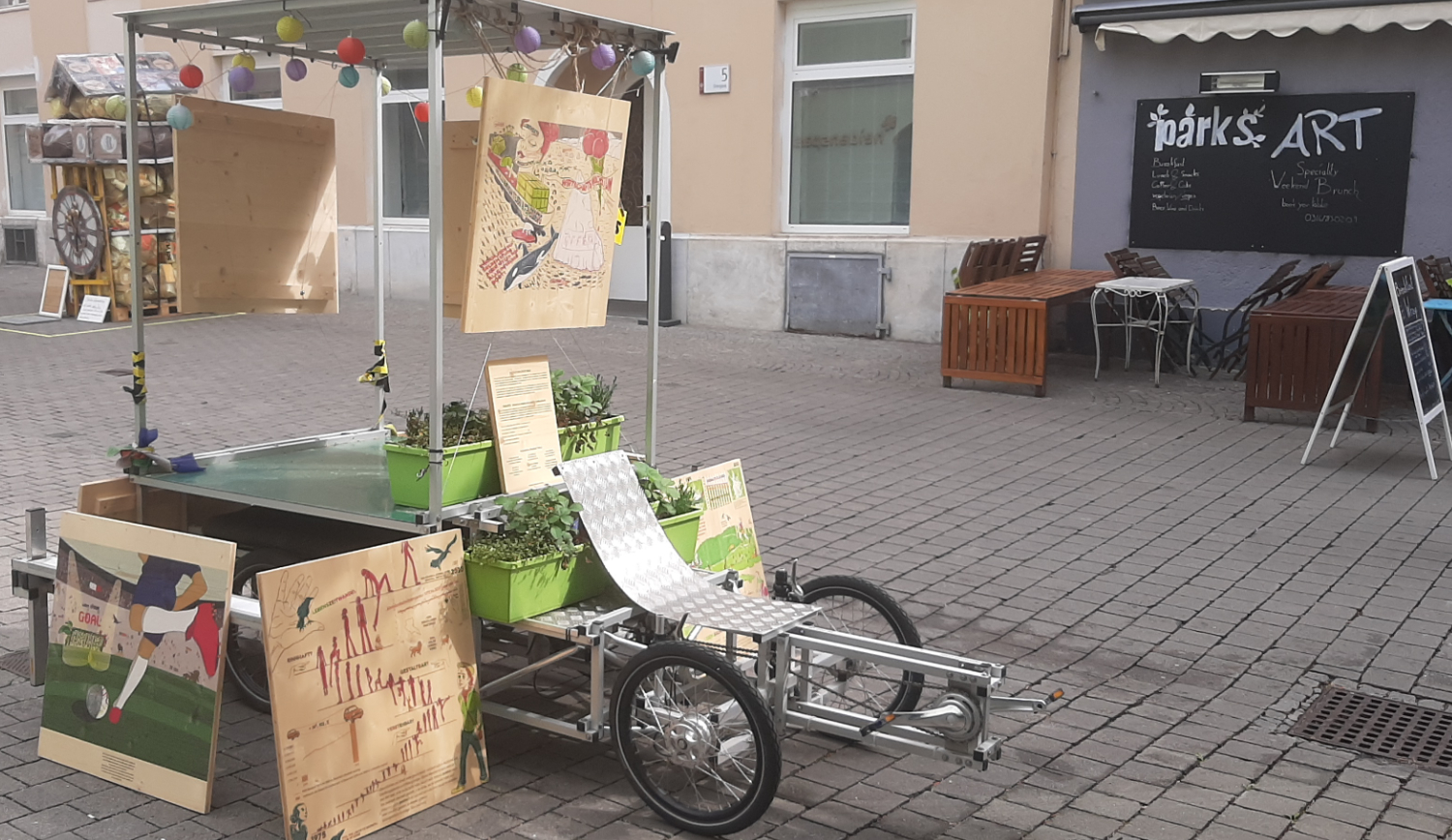 Im Rahmen des Lendwirbels Graz präsentiert das ILLU KOLLEKTIV GRAZ die 2021 entstandenen Holzbilder zu den Themen Klimawandel, Stadtklima und Transformation als mobile Outdoor-Ausstellung auf einem Transportrad.
