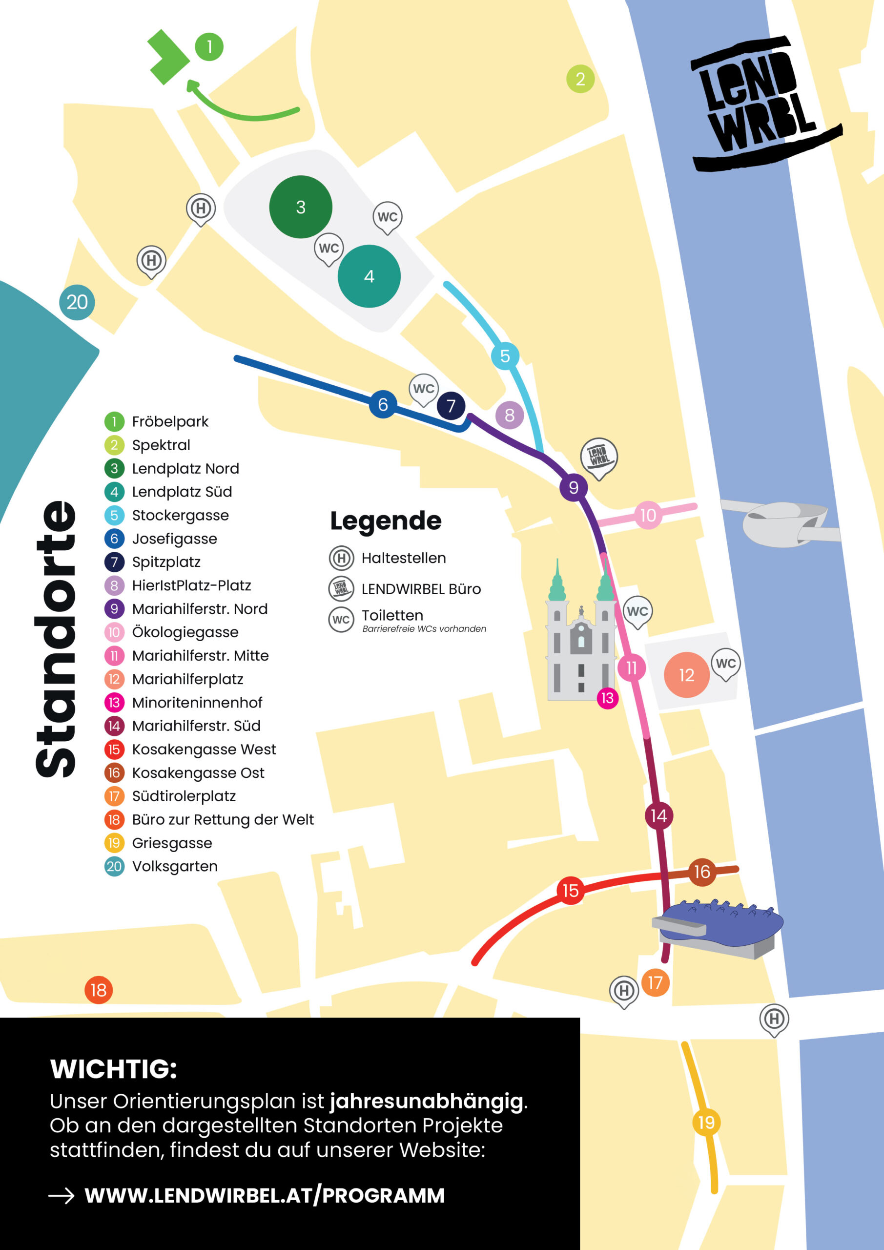 Der LENDWIRBEL ist eine bunte Mischung aus spontanen und geplanten Projekten. Du bekommst hier einen Einblick in die Wirbelei und findest mit unserem Orientierungsplan alle Standorte. Kinderfreundliche Projekte sind mit dem Label „for Kids“ gekennzeichnet.