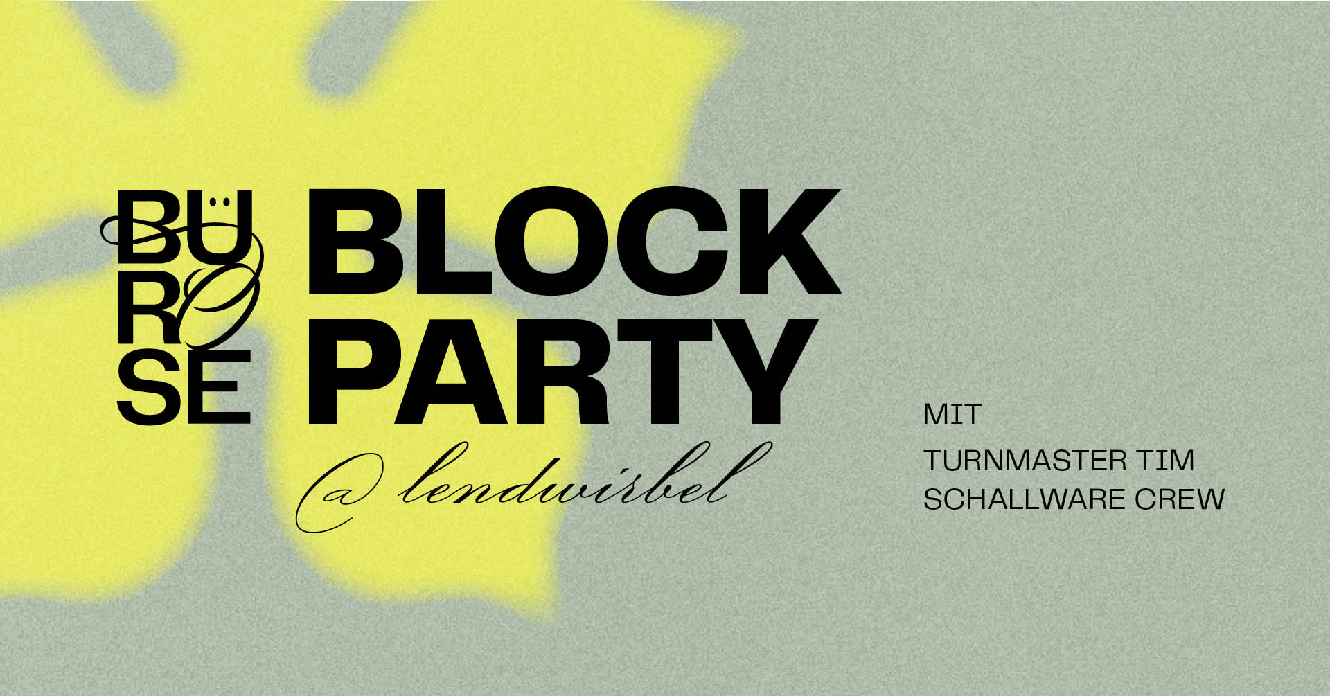 Die BüRoSe am Lend lädt zur Block Party ein. Es unterhält das BüRoSe Soundsystem feat. Turnmaster Tim und das Schallware Kollektiv mit den DJ`s in.situ und Frank Assit.